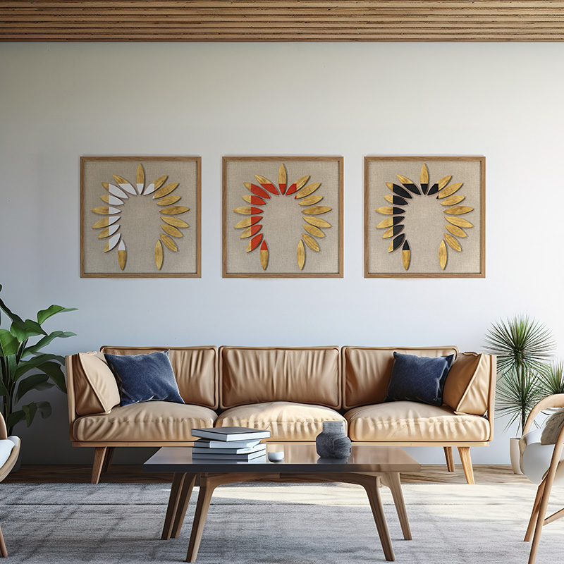 Conte histórias ancestrais em sua parede com o Quadro "Lenda Indígena" Mosaic da Casa Tukã. Esta peça 60x60cm apresenta design e pintura originais, criados com a arte da marchetaria em madeiras naturais por nossos artesãos. O mosaico forma imagens que remetem a lendas e à cultura indígena, trazendo uma sensação de tranquilidade e profundidade para qualquer ambiente. Ideal para salas, quartos ou escritórios. Contém alças tipo “V” para pendurar.