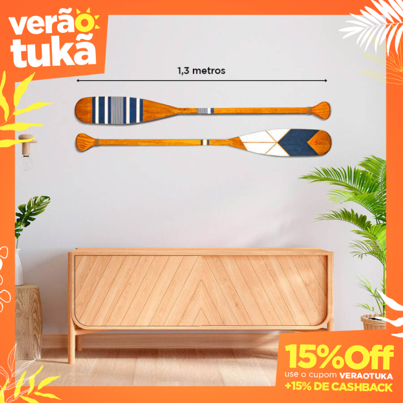 Crie uma composição única e cheia de estilo com o Kit de 2 Remos Decorativos Canadenses da Casa Tukã, apresentando as pinturas exclusivas C2 e C8. Com design e pintura originais, estes remos são feitos artesanalmente em madeiras naturais, modelados e esculpidos com a arte da marchetaria e finalizados com pintura à mão. Perfeitos para trazer a sensação de tranquilidade e um toque rústico-moderno para salas, quartos, escritórios ou casas de praia. Podem ser pendurados na parede (ganchos triangulares inclusos) ou apoiados. Disponíveis em vários tamanhos.