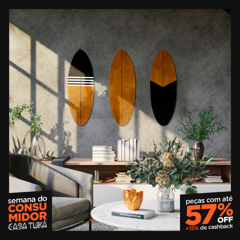Leve o estilo surf para sua casa com uma oferta imperdível! O Kit 3 Pranchas Decorativas Single da Casa Tukã traz três peças artesanais pelo preço de duas. Com design e acabamento originais, são feitas em madeiras naturais, modeladas e esculpidas por artesãos que dominam a marchetaria e finalizadas com pintura à mão. Perfeitas para criar uma composição dinâmica e cheia de personalidade em salas, quartos, escritórios ou casas de praia. Trazem a sensação de tranquilidade e o espírito livre do surf. Disponíveis em duas variações de tamanho e diversas cores. Incluem alças tipo “V” para fácil instalação.