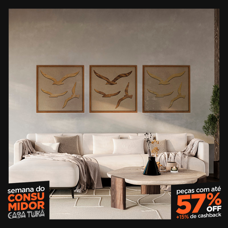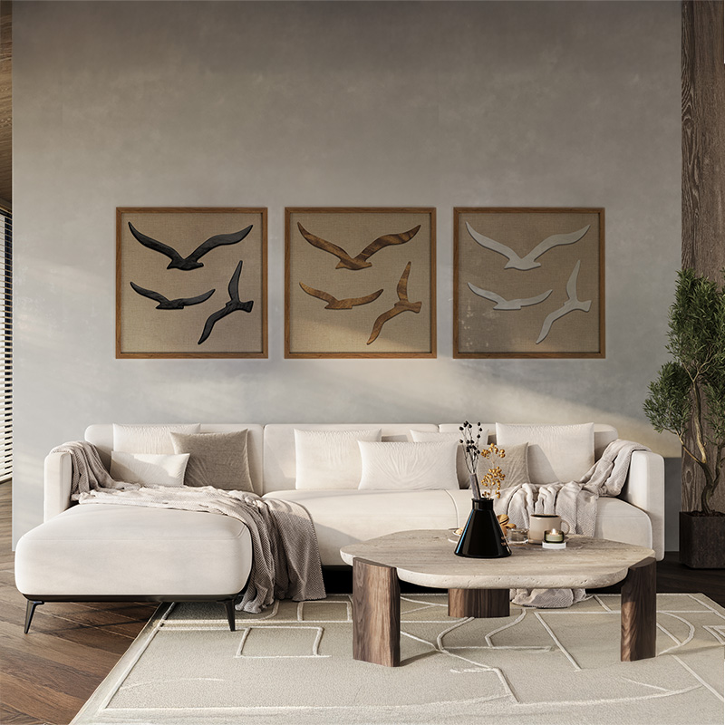 A delicadeza da natureza transformada em arte: pássaros esculpidos em madeira, emoldurados para dar vida e sofisticação ao seu ambiente.