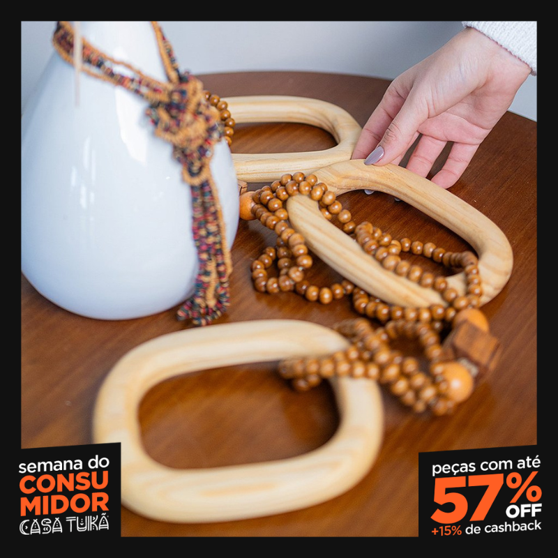 Convide a prosperidade e a harmonia para o seu lar com o Colar de Madeira Decorativo Xetí da Casa Tukã. Cada peça é exclusiva e original, feita artesanalmente com amor e dedicação, utilizando madeira de reflorestamento – um compromisso com a beleza e a sustentabilidade. Com 1 metro de comprimento, este colar é um adorno marcante, ideal para ser disposto sobre mesas de centro, aparadores, estantes ou como um elemento decorativo de parede que atrai boas vibrações. Valorize o artesanato, a cultura e o meio ambiente com esta peça única da Casa Tukã, criada para embelezar e harmonizar seu espaço com energia positiva. Especificações: Produto: Colar Decorativo / Adorno de Mesa Artesanal Nome: Xetí (Associado à prosperidade/harmonia) Exclusividade: Casa Tukã Material: Madeira de Reflorestamento Dimensões Aprox.: Comprimento Total: 100cm; Altura Contas: 3cm; Largura/Prof Contas: 13cm (Pode variar) Detalhes: Feito à mão, Foco em prosperidade/harmonia Estilo: Rústico, Místico, Natural, Sustentável, Artesanal