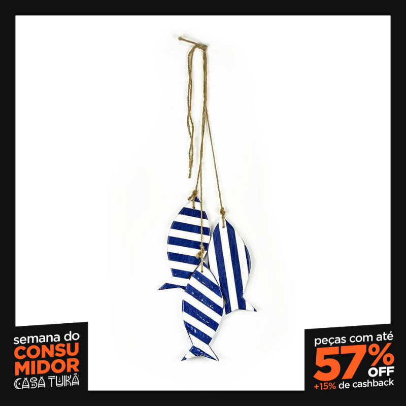 Traga o movimento e a cor do mar para seu ambiente com a Penca de Peixes Decorativos Listrados Azul da Casa Tukã. Com design e pintura originais, cada peixe (aproximadamente 7x20cm) é feito de madeiras naturais, modelado, esculpido e pintado à mão por artesãos que dominam a marchetaria. Esta penca artesanal traz uma sensação de tranquilidade e é perfeita para decorar paredes em salas, quartos, varandas, casas de praia ou onde desejar um toque náutico charmoso e vibrante. Especificações: Produto: Penca Decorativa / Enfeite Pendente Tema: Peixes Listrados Cor Principal: Azul Material: Madeiras Naturais Técnica: Marchetaria, Escultura, Pintura à mão Dimensões Aprox. por Peixe: 7cm (Largura) x 20cm (Comprimento) (pode variar) Detalhes: Design e pintura originais, Artesanal, Vários peixes em uma corda/estrutura. Estilo: Náutico, Praia, Rústico, Artesanal, Colorido