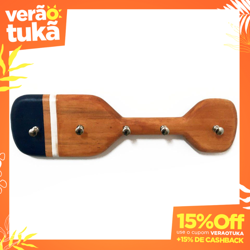 Organize suas chaves com o estilo náutico da Casa Tukã! Este Porta Chaves Decorativo em formato de remo (30x8cm) tem design e pintura originais em tons de azul, feito artesanalmente em madeiras naturais. Além de funcional, traz a sensação de tranquilidade do mar para sua entrada, corredor ou cozinha. Possui ganchos para as chaves e alças triangulares para fácil fixação na parede. Especificações: Produto: Porta Chaves de Parede Decorativo Formato: Remo Cor: Azul Material: Madeiras Naturais Técnica: Marchetaria, Pintura à mão Dimensões Aprox.: 30cm (Comprimento) x 8cm (Largura) (pode variar) Detalhes: Pintura original, Artesanal, Inclui ganchos para chaves e alças triangulares para pendurar. Uso: Organizar chaves, Decorativo. Estilo: Náutico, Praia, Rústico, Artesanal, Funcional