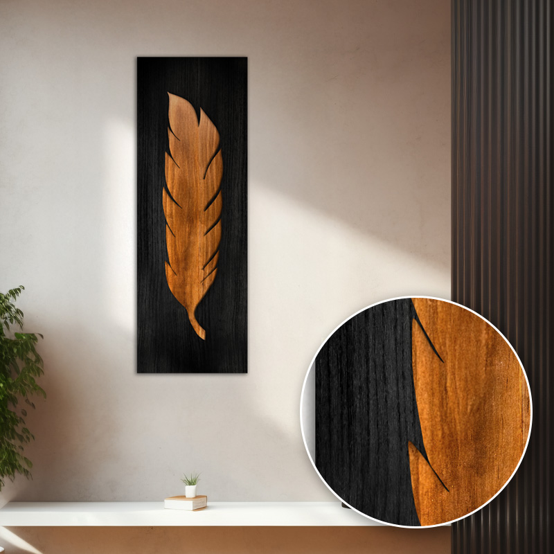 O quadro em fundo preto de folha na madeira em alto relevo, se destaca pela beleza natural e o toque artesanal da peça, trazendo um charme incomparável! Sem moldura