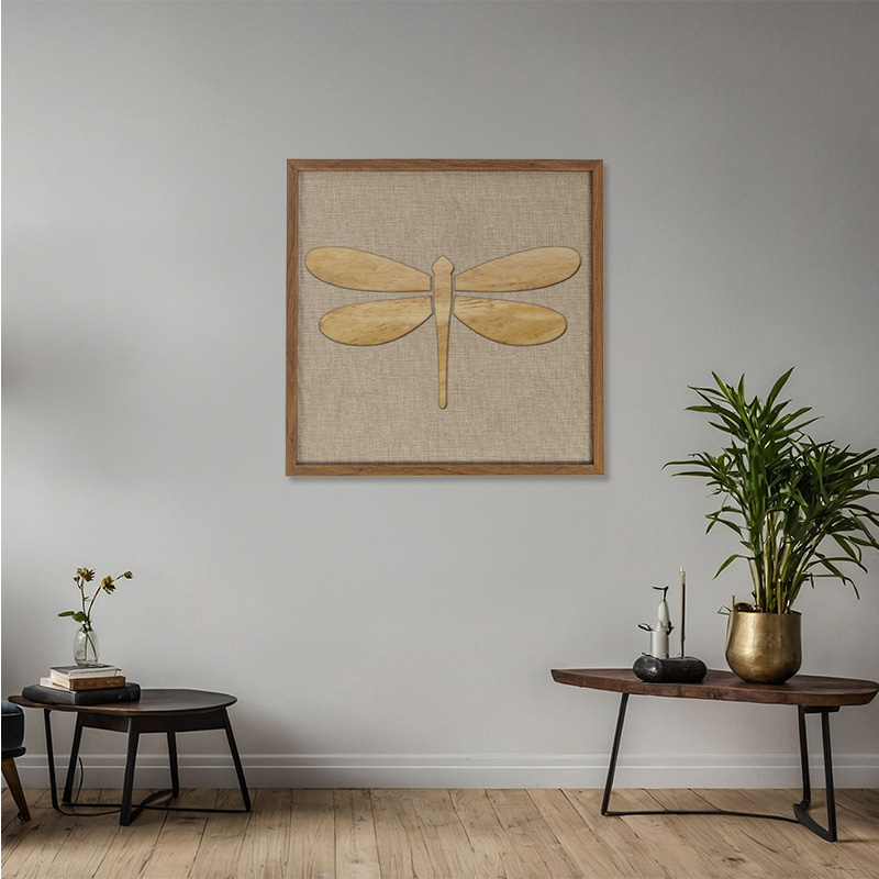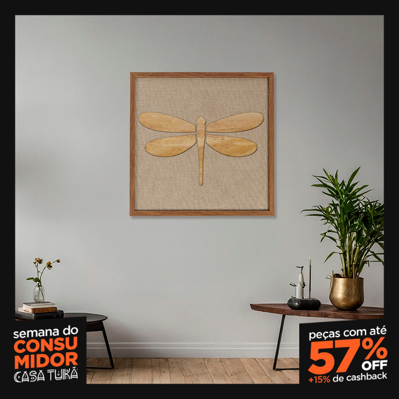 Nesta obra da Casa Tukã, a libélula em alto relevo na madeira ganha força e profundidade, dialogando com o tecido do fundo — união entre o natural e o sensível, o sólido e o delicado. Uma peça que carrega significado, arte e propósito, ideal para quem busca um objeto que vá além da estética e traga mensagem, identidade e alma ao espaço.